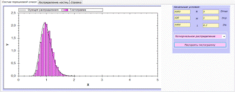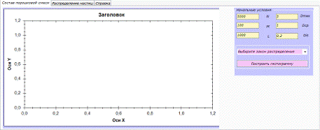 Здесь содержатся поля для ввода начальных условий, выбор распределения, по