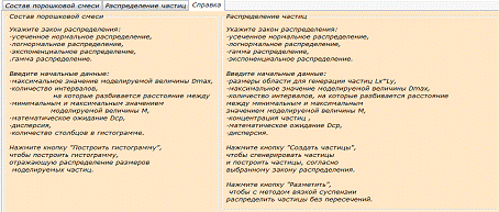 смеси», «Распределение частиц» и «Справка».