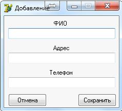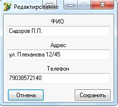 ['Адрес']: =Edit2. Text;. ADOQuery1. FieldValues ['Телефон']: =Edit3. Text;.