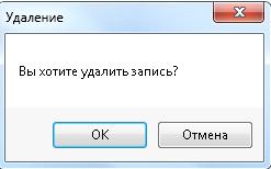 хотите удалить запись? ', 'Удаление', MB_OKCANCEL) =IDOK then. Delete;;;TForm6.