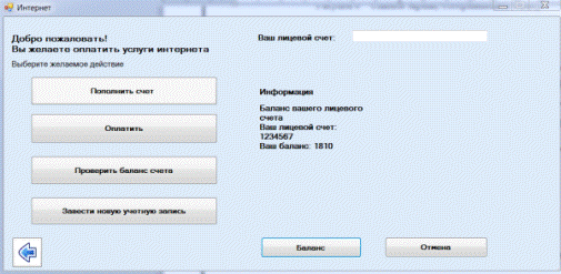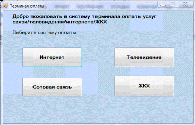 курсовом проекте мною был реализован терминал оплаты услуг связи, интернета,