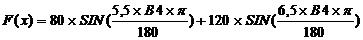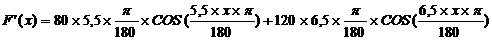 «=(80*5,5*ПИ()/180*COS(5,5*B4*ПИ()/180)+120*6,5*ПИ()/180*