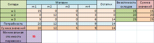 перевозку кроватей оказались минимальными и составили 95 условных единиц.