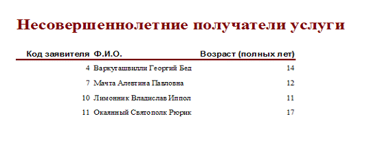 Рисунок 3.4.13 - Отчет «Несовершеннолетние получатели услуги»