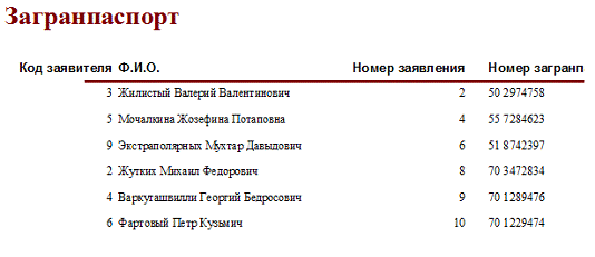 Рисунок 3.4.14 - Отчет «Загранпаспорт»