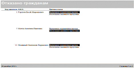 Рисунок 3.4.15 - Отчет «Отказано гражданам»