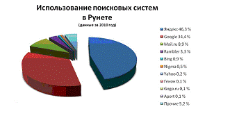 большинстве представлен одной отечественной (поисковая система Яндекс, доля