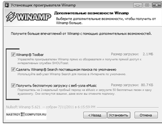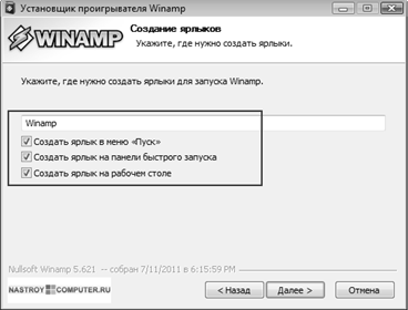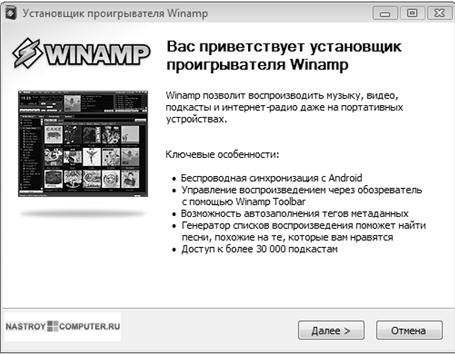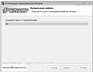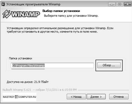 умолчанию (C:\Program Files\Winamp). Для продолжения нажмите Далее.