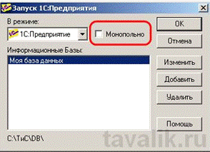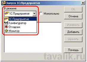 работы» - режим, при котором запуск системы 1С:Предприятие будет выполнен таким