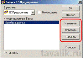 «1С:Предприятие», отметить необходимую информационную базу и нажать «ОК«, после