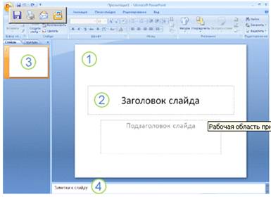 1 - В этой области Слайда можно работать непосредственно с отдельными