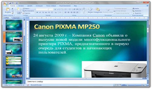 Разработка презентации эксплуатации цветного струйного принтера средствами PowerPoint