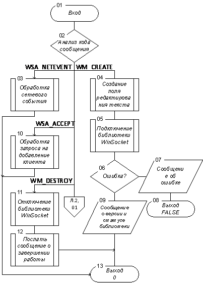 Рисунок 1.7 - Схема алгоритма «оконной» процедуры программы-клиента