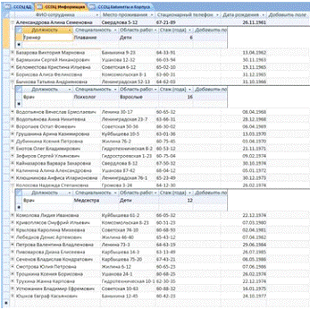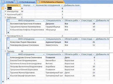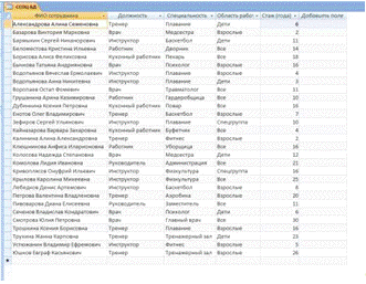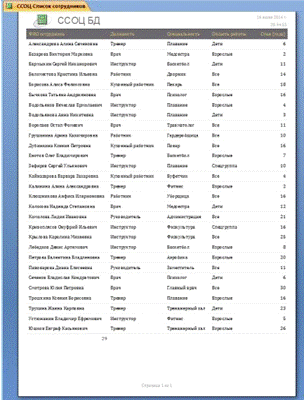 того чтобы спроектировать список сотрудников Спортивно-Оздоровительного Центра.