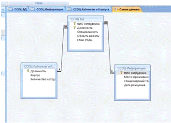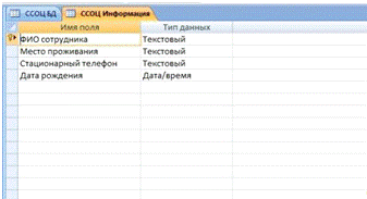 БД, я перенёс курсор на «ФИО сотрудника» в таблицу ССОЦ Информация. Появилось