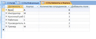 «Должность». Таким образом, у меня образовались связи между таблицами.
