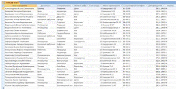 спроектированному списку сотрудников. В этот вариант таблицы были внесены