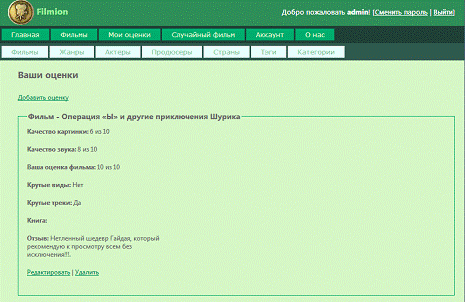оценивания фильмов;