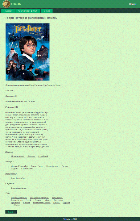 выборе фильма по различным категориям: жанрам, стране, актерам, оценкам других