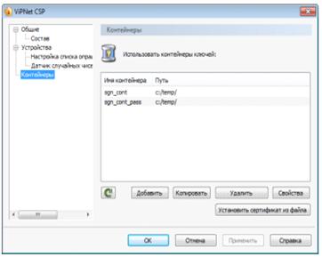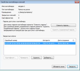 2.11 Добавление сертификата в контейнер и окно свойств сертификата