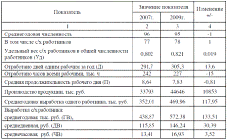 продолжительности рабочего дня на 0,81 ч, что также отрицательно повлияло на