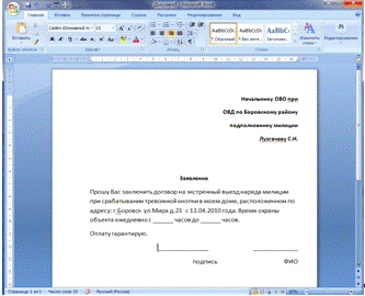 объекта под охрану сопровождается оформлением документации: заявления, договора