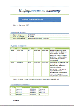 Примеры отчетов «Информация по клиенту», «Отчет по пенсии», «Подписки по