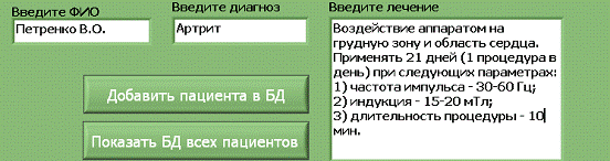 добавления анкеты нового пациента в базу данных (см. рис. 13). На рис.10
