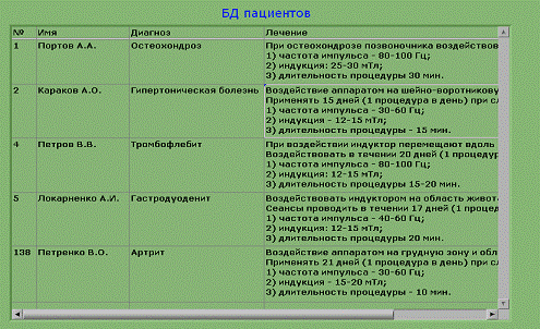 всех пациентов. Я приведу скриншот уже заполненной БД:
