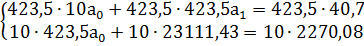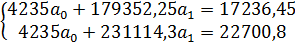 На основе данных таблицы 6 имеем систему