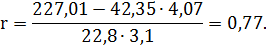коэффициента корреляции: