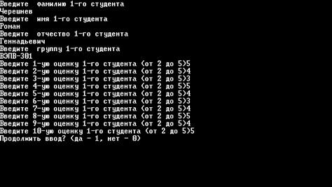 отчество, группу (пример ВЭПВ-301), 10 оценок. После ввода будет предложено