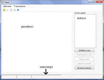 шарами, так как ни один из шаров не выбран, то изменение и удаление недоступны.