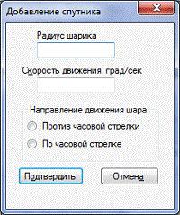 обеспечивает задание параметров шара: радиус шара, скорость движения,