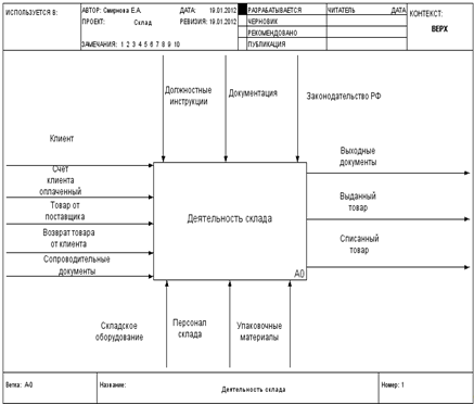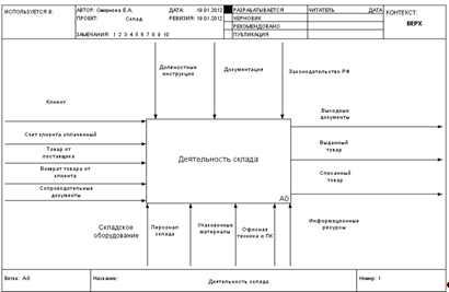 контекстная диаграмма ИС «Деятельность склада»: