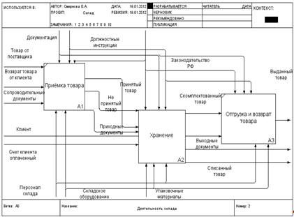 · Диаграмма «Деятельность склада» - первый уровень дерева узлов (top level