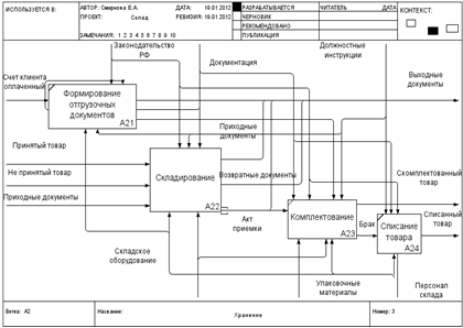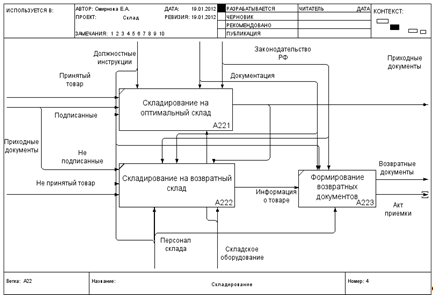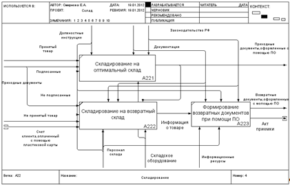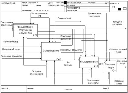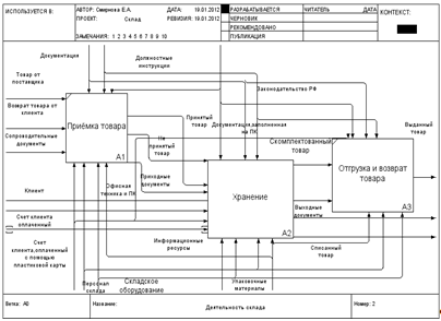 Диаграмма декомпозиции IDEF0. «Складирование»AS-IS.