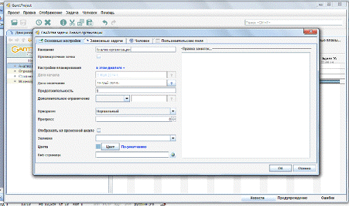 исполнения, приоритет, отображение на временной шкале и т.д.