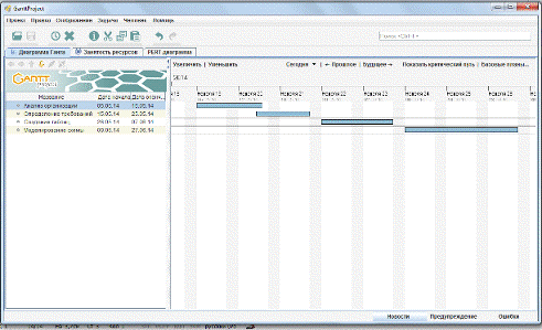 Рисунок 7 - Диаграмма Ганта в системе GanttProject