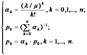 коэффициенты при предельных вероятности состояний СМО с отказами.
