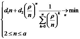 Программа находит оптимальное число каналов обслуживания для СМО с отказами без