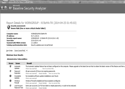 найденных уязвимостей в нашей системе, такие же уязвимости показала нам и MBSA,