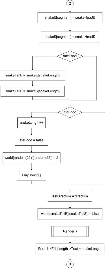 координатами "їжі", "змійка" збільшується на 1 клітинку.