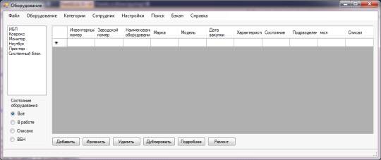 характеризующую каждый вид оборудования находящийся в распоряжении службы ЦИТ.