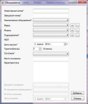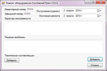 внесены изменения в оборудование» + comboBox1. Text + «с