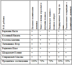 первоначальных представлений о космосе у детей старшего дошкольного возраста
