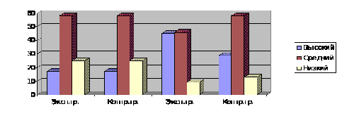 экспериментальный класс оказался результативнее на высоком и низком уровне, а