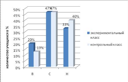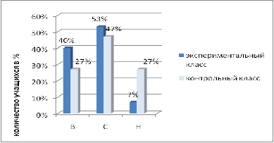 экспериментальном и контрольном классах.