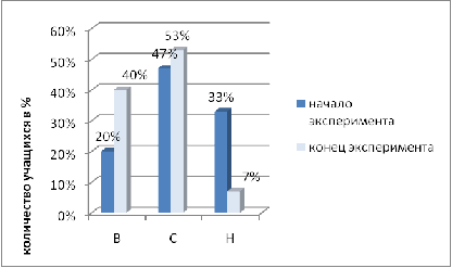 в контрольном. В начале эксперимента результаты экспериментального и