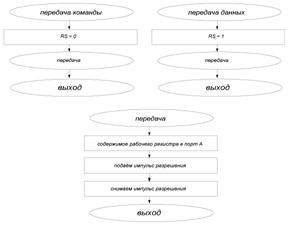 готов (BF=0)WB1PortD,RW ;Направление записи = в ЖК-модуль